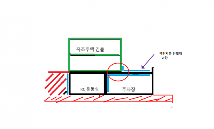 주차장과 목조주택 건물의 겹치는 부분에 열교가 많이 걱정됩니다.