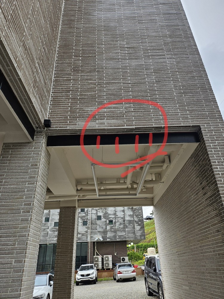 평소 작은비에는 괜찮으나 큰비가 오면. 저부분 하단으로 물이 떨어져내립니다.