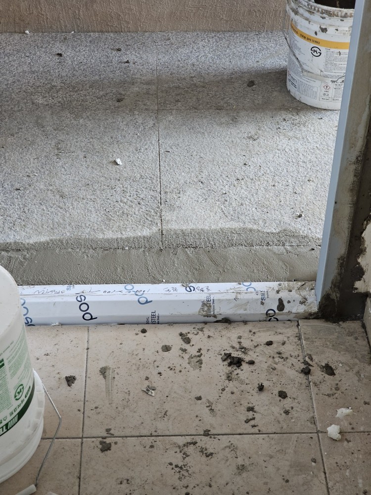 두 번째 사진은 창호 보호 필름 위에 타일 마감을 하였습니다.