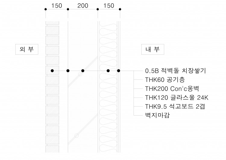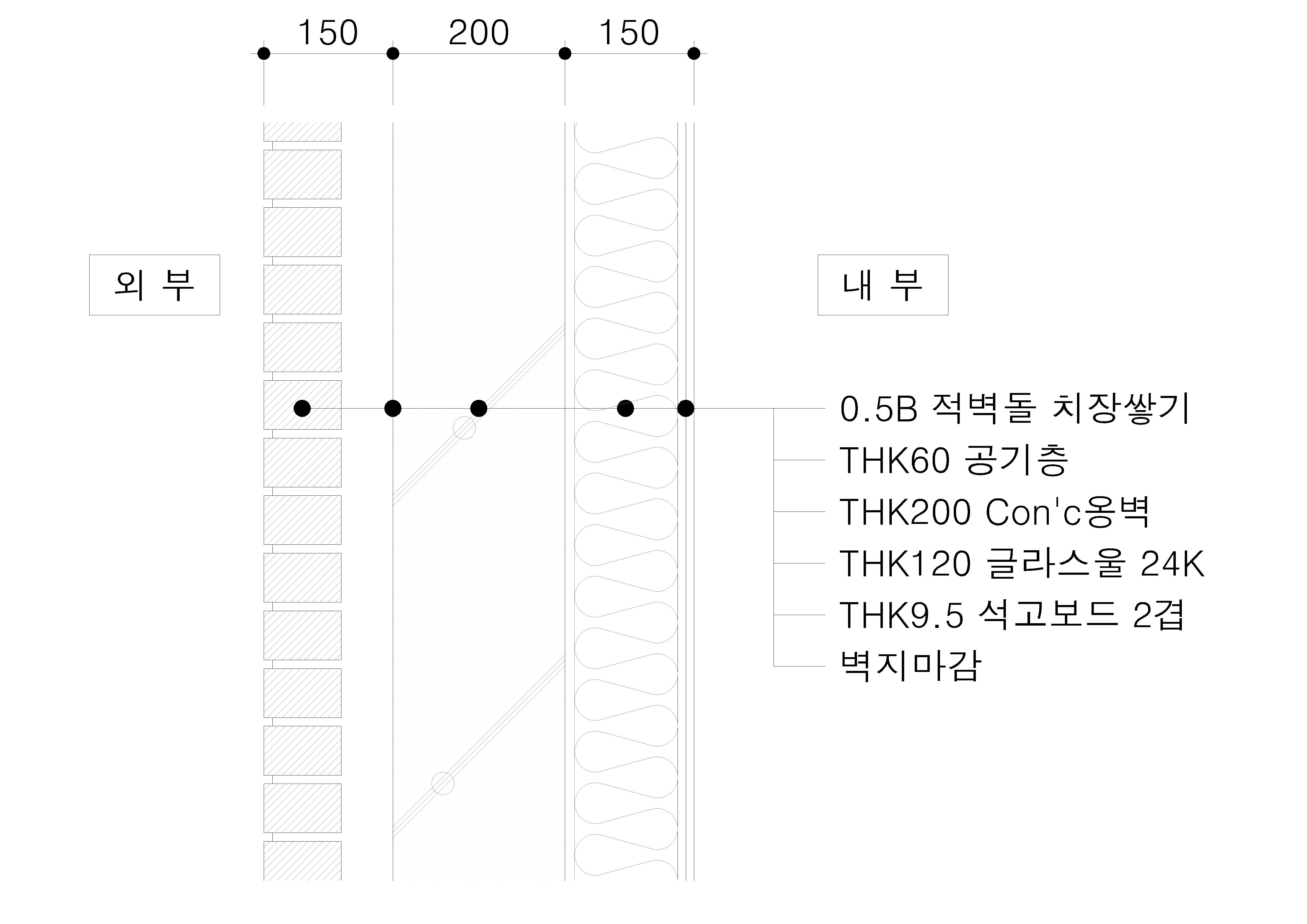 아래의 도면과 같은 디테을의 벽체입니다.