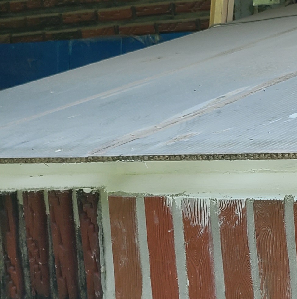 즉 외부에 내수합판을 대는 작업이 선행되어야 하는데, 외부에서 곡선은 무시하고 직각으로 덮어야 합니다. 원형과 직각 사이에 뜨는 부분에 대해서는 각목 등으로 보강을 해주어야 하고요.
