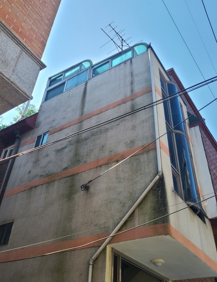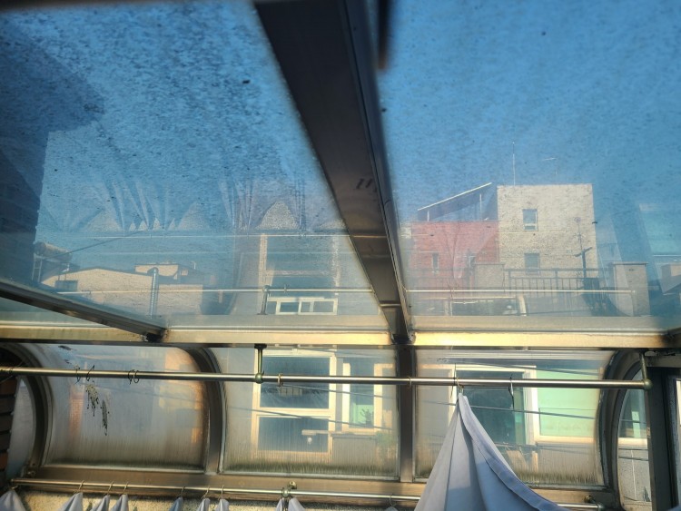 이 지붕 위쪽으로 가림막 설치가 필요한듯 합니다. 지붕 아래쪽 계단이 덥고, 춥고, 결로(?)로 인해 물이 떨어지고, 비가 좀 샙니다.