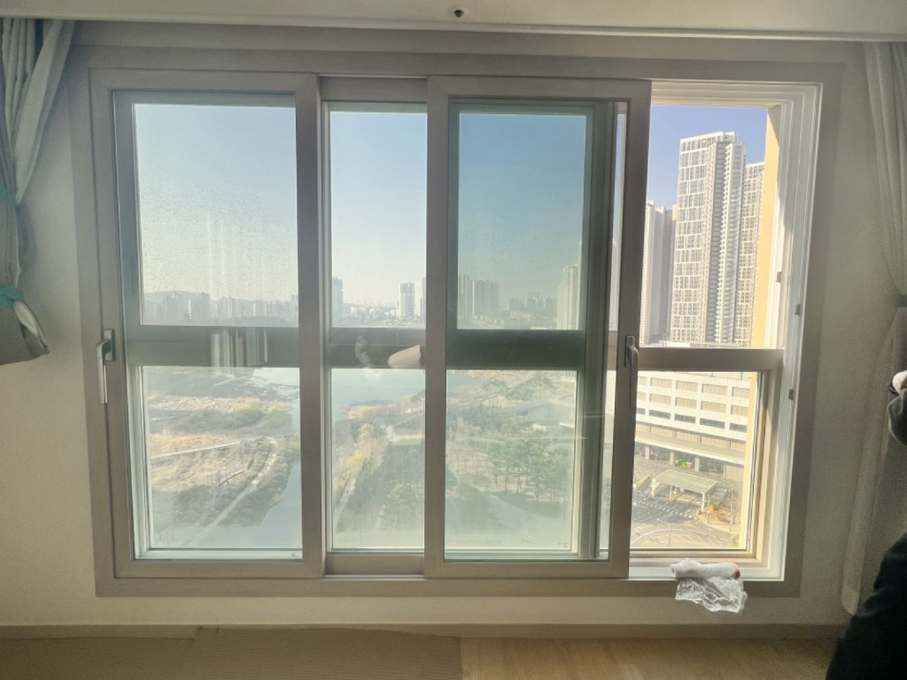 기존 이중창틀을 건드리지 않고 폼을 채워서 시스템 창호를 넣은 것을 보았습니다.