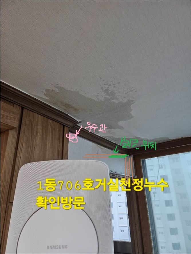 비가 엄청많이 온날 아랫집에서 누수가 있다고 연락이왔습니다.