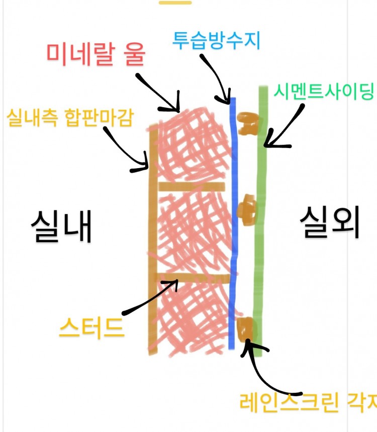 골조세운뒤 외부에 osb합판을 안하고 바로 타이벡 두르고 레인스크린각재 + 외장마감재