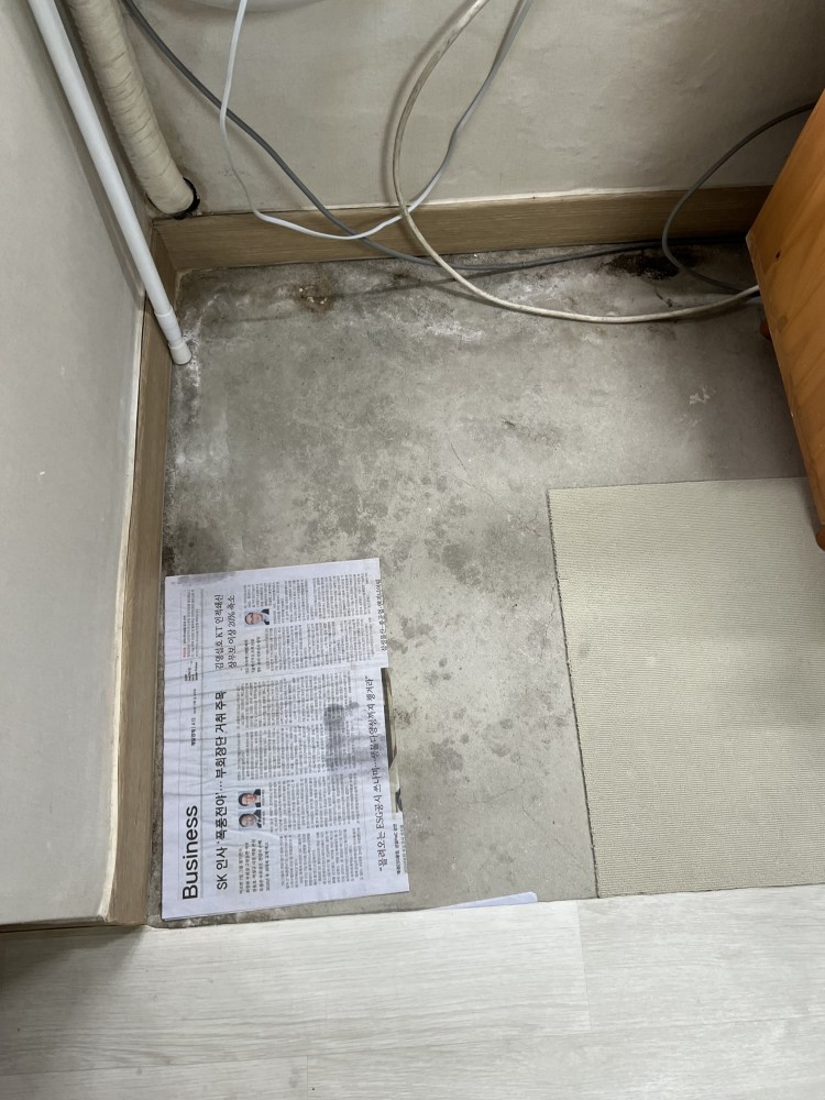 세입자가 살고 있는 상태인데, 해결이 안되서 지금은 장판을 아예 잘라버리고 시멘트가 드러난 곳에 살고 계세요..