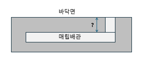 단면으로 보았을 때, 동서로 물매를 잡은 배관의 상부면 (원의 상단)과 타일 바닥면 까지의 거리를 의미했습니다.