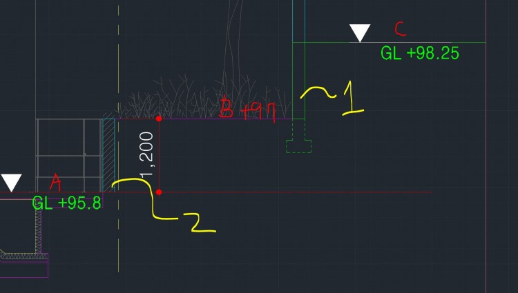 원래 A의 레벨은 없었구요. 본 계획시 굴토하여 새로운 레벨입니다. 원래는 B, C 레벨만 있었구요.