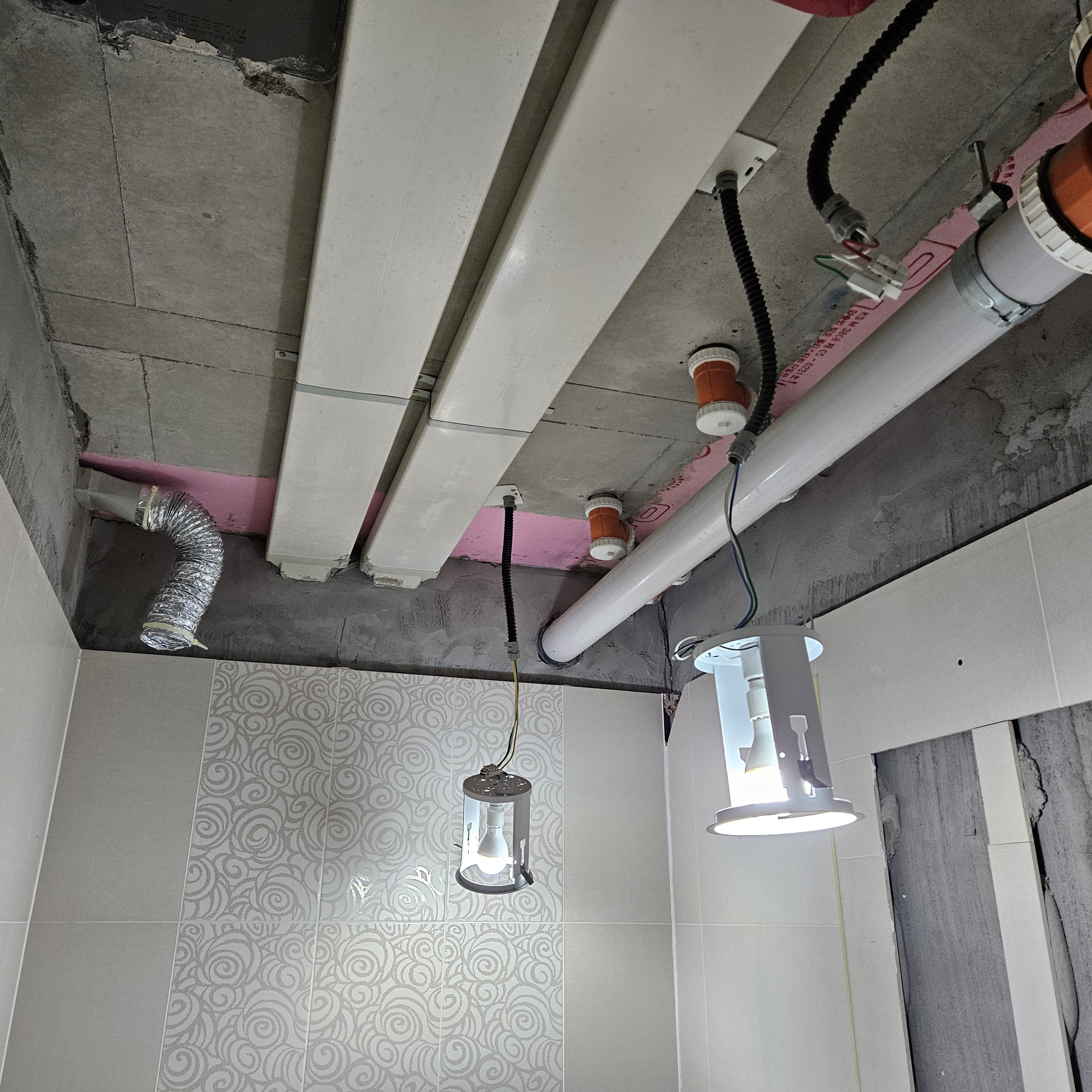그런데 철거를 하고 보니 환풍기 배관쪽에 전선이 없고, 이 아파트는 환풍기 배관이 전열교환기로 연결이 되어 작동한다고 합니다.