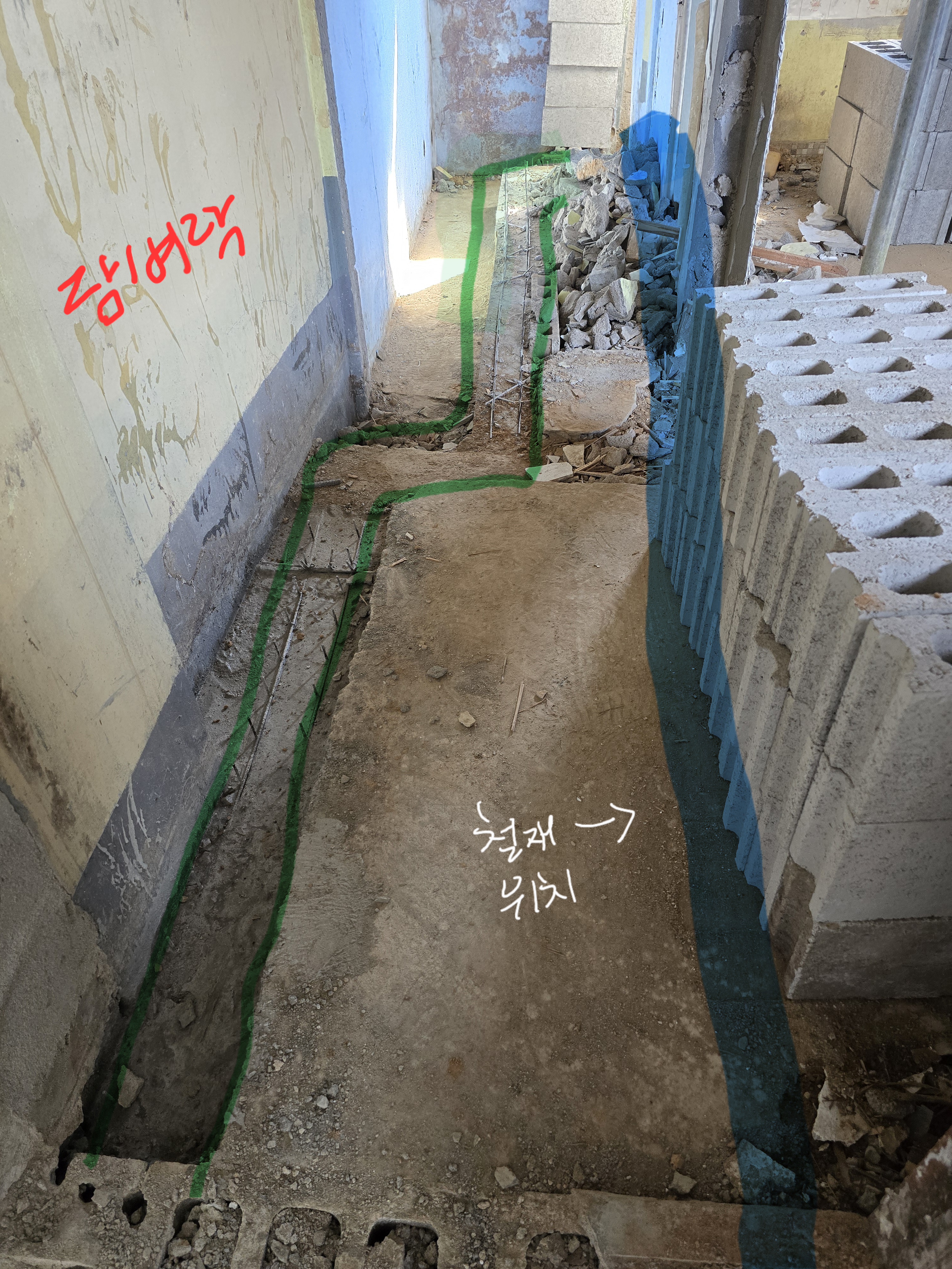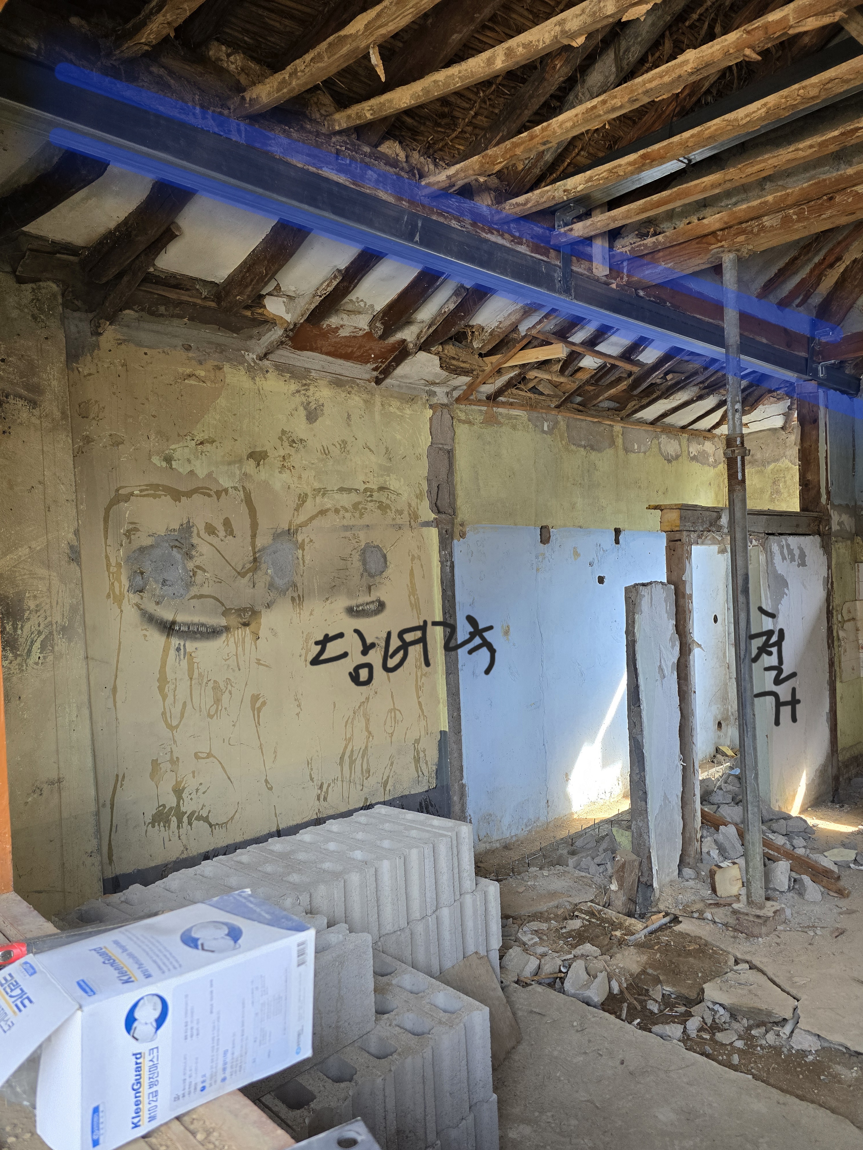 아무튼 철재가 새로 쌓는 벽 내부로는 들어가는것 같습니다