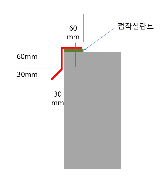 1-1) 눈, 비를 이기고 알미늄 판이 고정되게 하려면 실리콘으로 접착하는 부분이 몇 센티가 되어야 안전 할까요? (담장 상부는 미장이 되어 있어 먼지만 제거하고 붙이려 합니다)