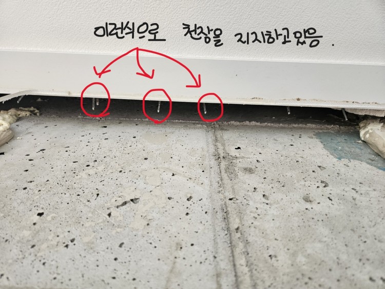 그러면 지금 보이는 못을 뽑기도 좋고, 벽마감시 천장을 고정하기도 용이하고요.