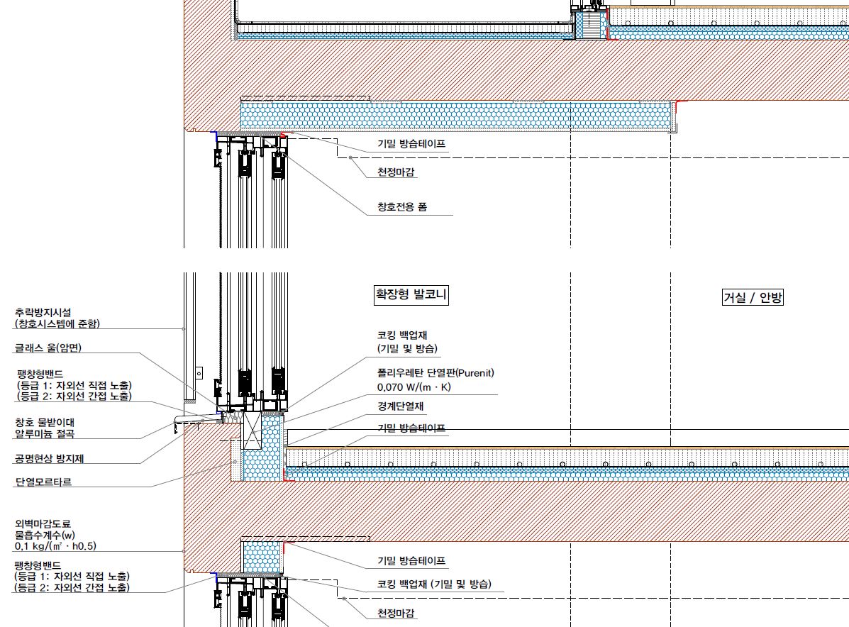 지금 계획중에 있는 창호 선정이 적정한지? (첨부도면 참조-전 창호 로이유리 시공 검토중) 창호면과 맞닿는 벽체는 어떻케 단열시공을 해야하는건지?