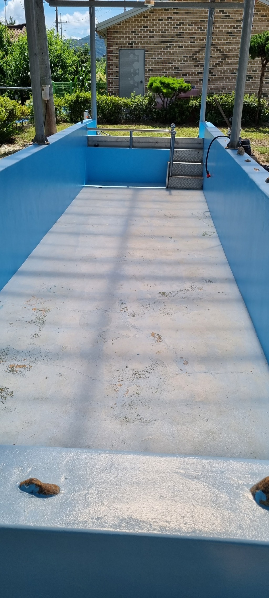 햇빛이 들고 담수가 되는 공간이니 도막방수로는 어려울까요?
