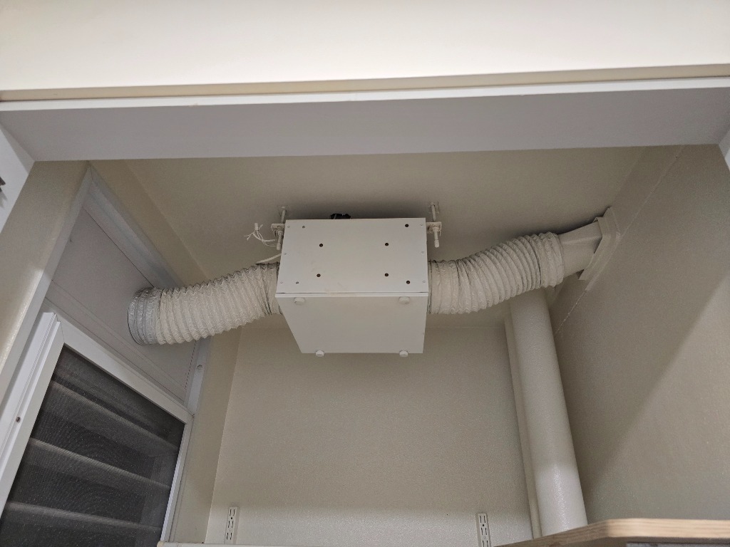기존 배기 구멍은 각 방마다 1개, 거실에 2개 총 5개가 있습니다. 모두 위 사진의 장치를 통해 빨아들이는 걸로 보이네요..