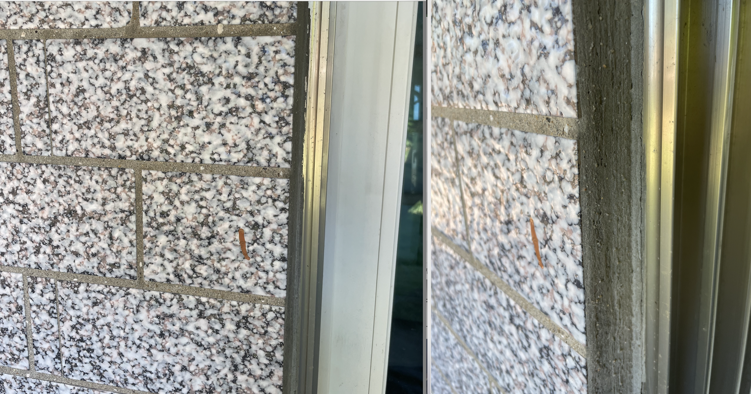 (첨부 이미지 타일 마감된 벽체 외부 클로즈업 사진 앞면과 약간 측면)