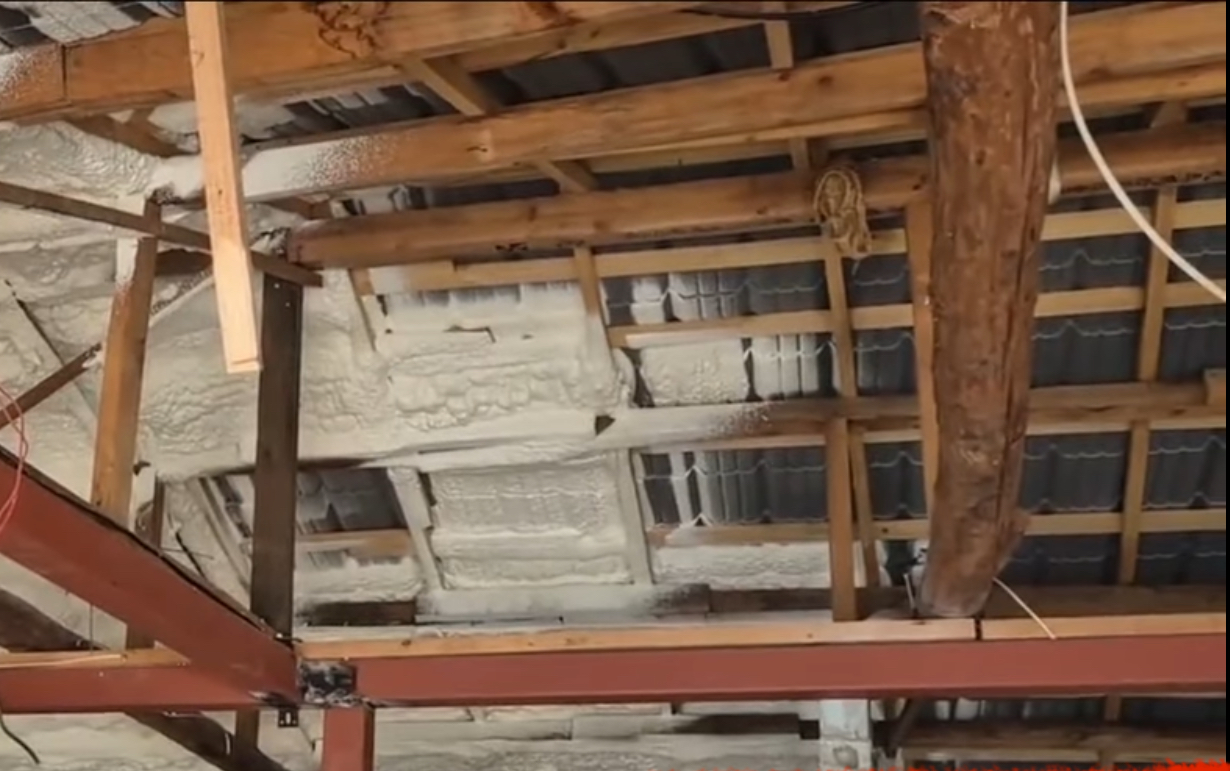 서까래가 있는 천장을 단열할 때 특유의 굴곡면 때문에 우리텐뿜칠로 단열을 많이 하더라구요.