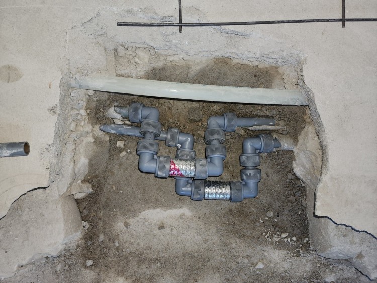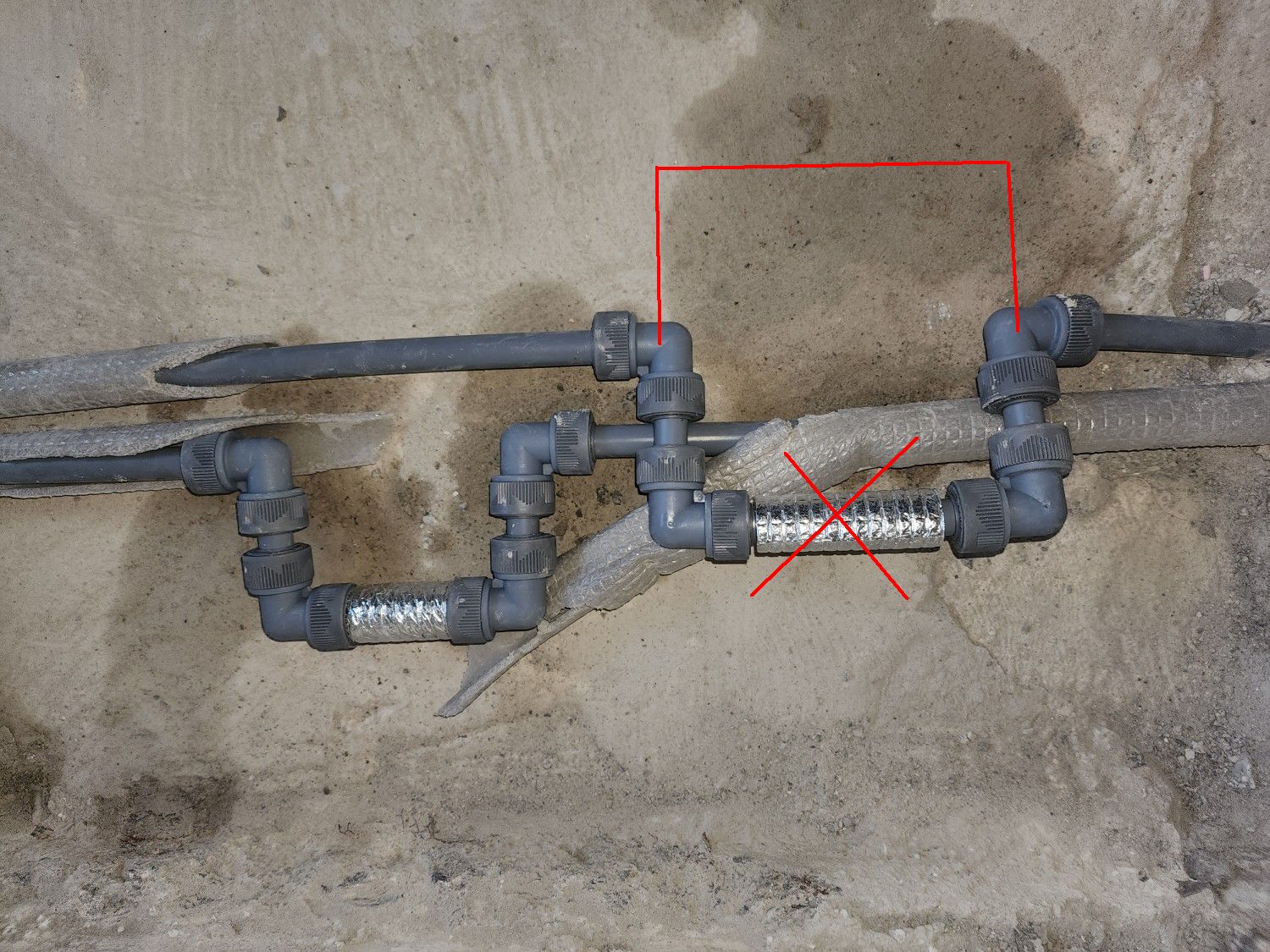 1. 연장한 pb배관을 위아래로 겹쳐놓은것이 문제없는지