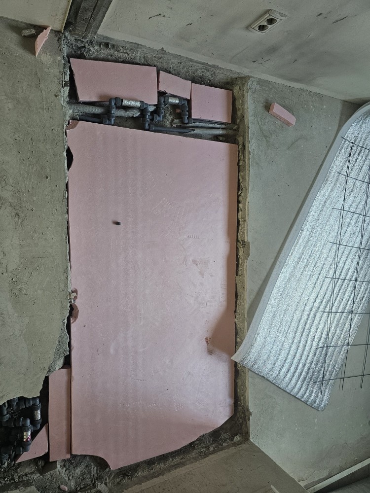 단열재를 깔면 그 단열재 아래로 몰탈이 들어가기가 거의 불가능해서 2차 하자로 이어질 수 있습니다. 그러므로 비록 가격이 더 나가지만.. 넓은 면은 일반 몰탈로 채우고 나머지를 수평몰탈로 채워 주거나, 모두 수평몰탈로 채워 주는 것이 좋겠습니다.
