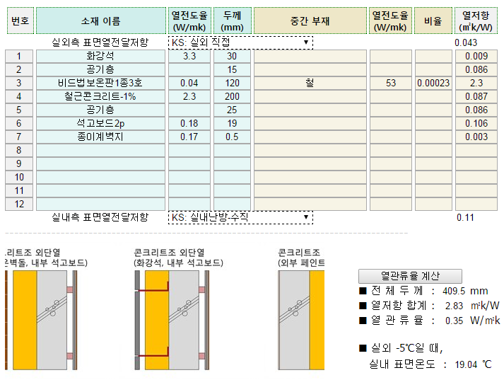 일전에도 어느 연구원이라는 분이 노출콘크리트 중단열 샘플에 대한 열관류율 시험 결과가 예상치를 훨씬 넘어서는 값으로 측정되는 문제에 대한 질의도 있었고(당초 시편 제작시 예상치의 두배 정도였던 것으로 기억합니다) 그런 결과가 나온 이유로 중단열에 사용된 긴결재인 금속 철물에 의한 점형열교가 중요 원인으로 추정된 바 있습니다.