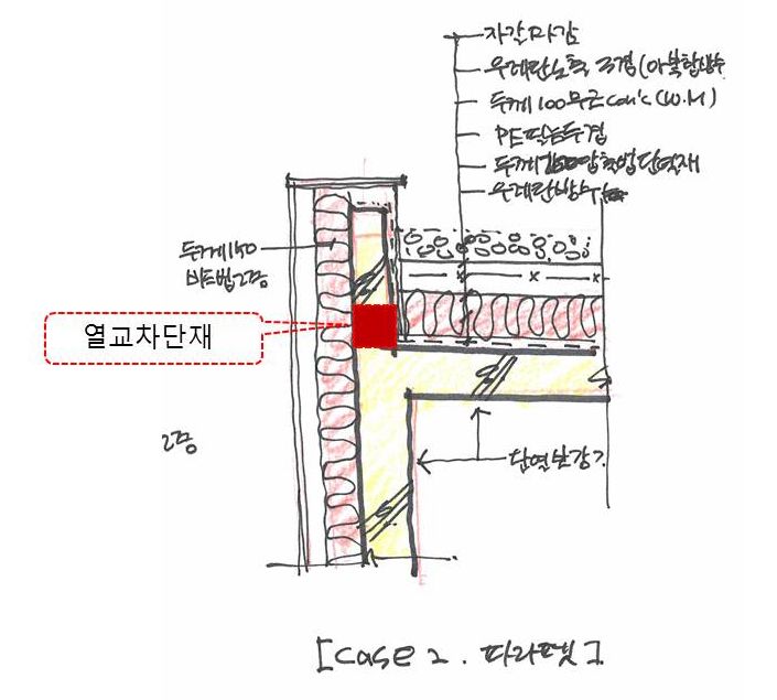 CASE 2> 옥상 파라펫상세 - 단열이 끊어져 좋지않지만 단열보강을 어떻게하는게 가장 합리적일지.