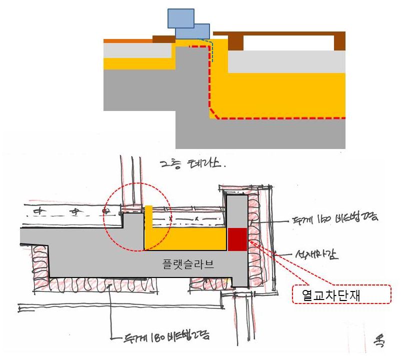 하지만 경사지붕이아닌 평슬라브라 방수턱때문에 단열이 끊기게 될듯합니다...