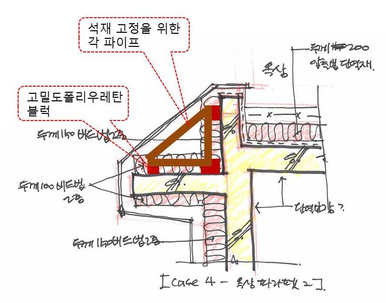 CASE 4> 옥상 파라펫 일부부분인데 석재를 잡기위한 슬라브가 돌출되어 일부 단열보강계획입니다.