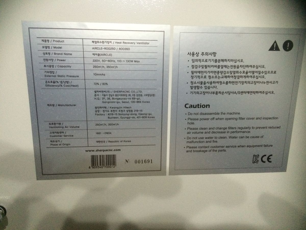 1. 국내 환기장치는 기기의 외부단열에 대한 규정이 있지만, 이 규정이란 것이 거의 없는 듯 단열만 해도 통과할 정도입니다.