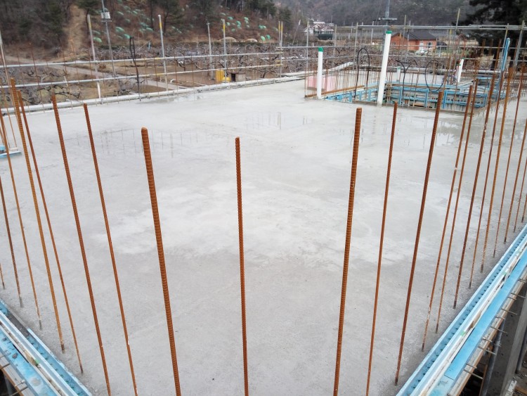다행히 시공사에서 표면을 깨끗이 정리한 다음 신구접착제라는 것을 도포하고 콘크리트를 5cm 정도 더 치기로 했습니다.