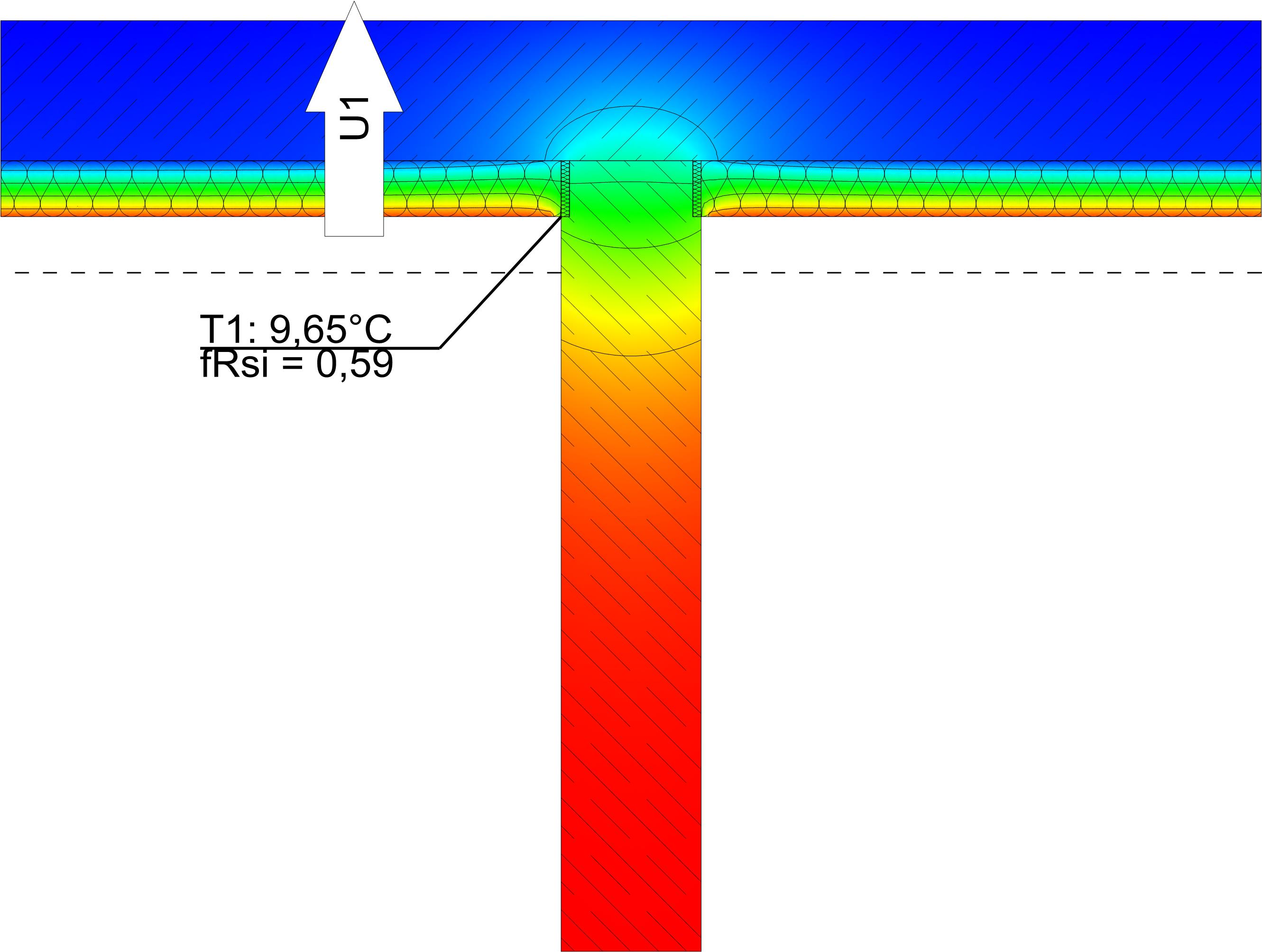 그래서 제가 가진 프로그램은 3차원 열교해석이 불가능 하지만 아래의 그림처럼 2차원으로 간단하게 해석을 한다면 실제는 그 중간치가 아닐까 합니다.