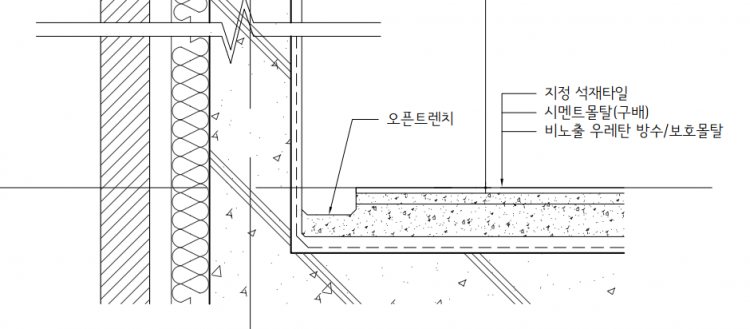 올려 주신 그림도, 바닥은 비노출인데 벽은 노출로 올라가게 되는데, 이 부분에 대한 마감을 말씀드린 것입니다.