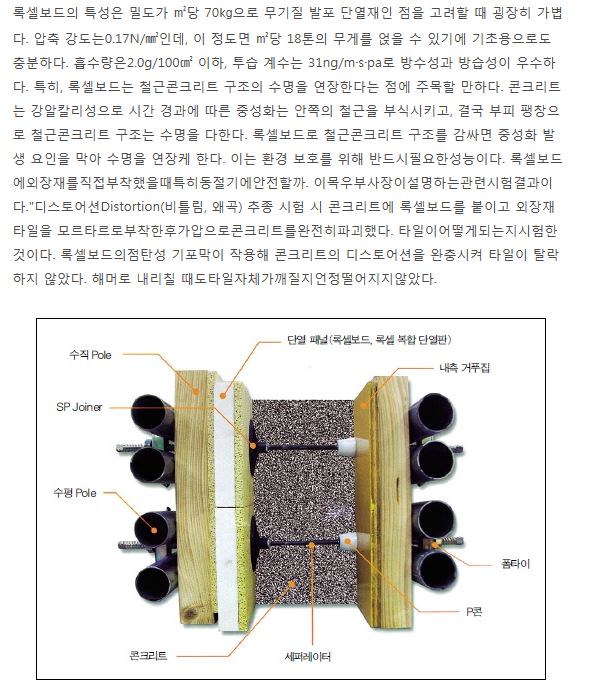 동탄에 시공된 사례를 보고 이 벙법으로 시공하면 차후에도 문제가 없는 건지.. 좀 생소하지만 록셀이라는 단열판을 사용해서 시공하면 좋을것 같은데 단가도 좀 있는 편이고..비드법2종-몰탈-메쉬-화스너-몰탈-타일의 제대로된 시공과 비교 했을 때 어떤 방법이 타일 탁락의 하자에서 더 안정적인지 알고 싶습니다.
