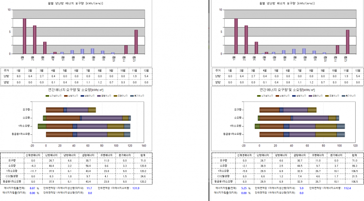 좌측과 우측 모두 같은 설계조건으로 계산했으며 500세대와 1000세대규모로 세대수만 두배 늘려봤습니다 유믜미한 결과가 나와 궁금해서 질문합니다 지역난방 적용시 대단지 아파트일수록 유리한 결과가 나오나요?