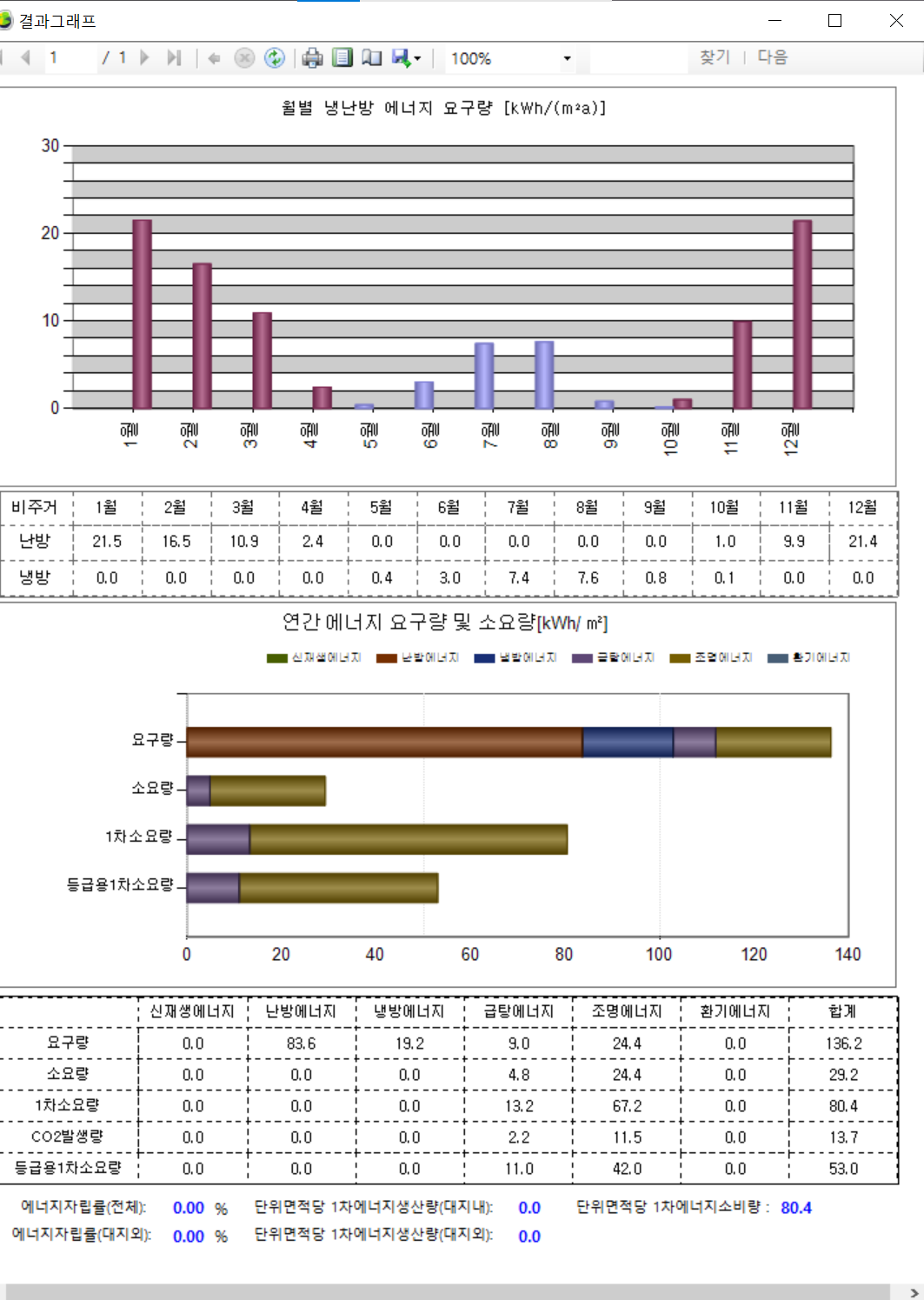 eco2를 공부하고 있는 대학생입니다. 사진을 보시면 소요량, 1차소요량, co2 발생량이 난방과 냉방에서 0이 나오는데 무슨 문제가 있는건가요?