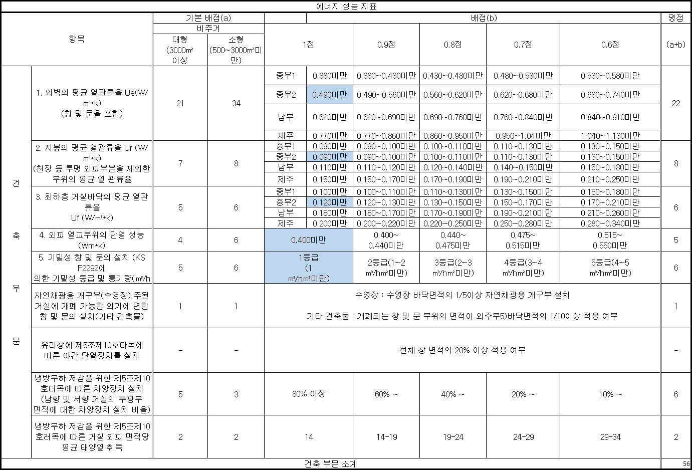 항목을 대형건물로 적용하면 다 합쳐도 56점인데 65점이하면 건축허가를 받을 수 없는 건물이라고 들었습니다 건축부분만을 포함했는데 그 외 기계,전기,신재생까지 포함하여 75점을 넘으면 되는건지 궁금하여 여쭤봅니다