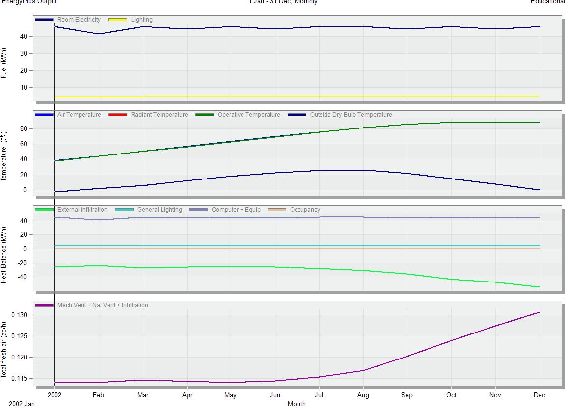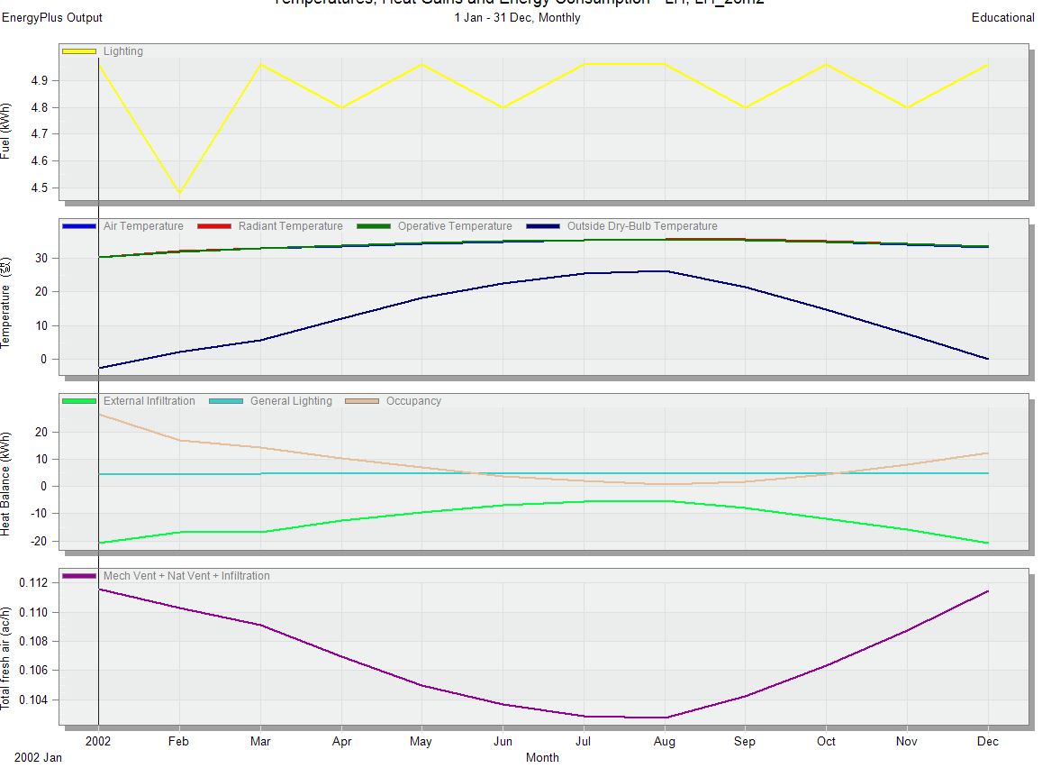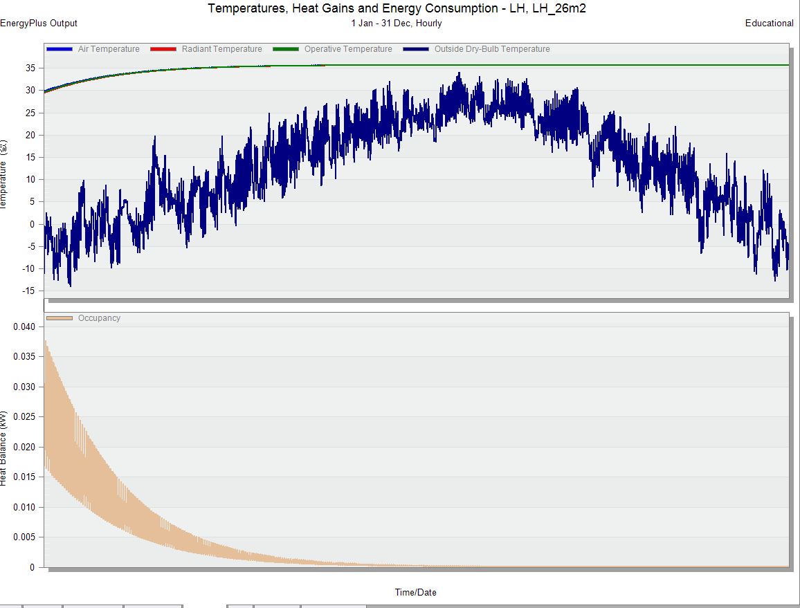 그런데 시뮬레이션을 돌리니 operative temperature가 8월에 63℃까지 나타나는데, 상식상 맞지 않은 온도라고 생각됩니다. 모델링을 잘못한 건지 아무리 봐도 해결방법을 모르겠네요.