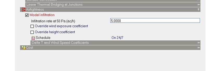 construction도 모두 입력완료했습니다. occupancy는 number of people로 설정하여 거실에만 1로 입력했습니다. 설비시스템은 아무것도 입력하지 않은 상태입니다. 냉난방 없이 건물 자체에서 냉방부하 및 난방부하가 얼마나 발생하는지 알기 위해서입니다.