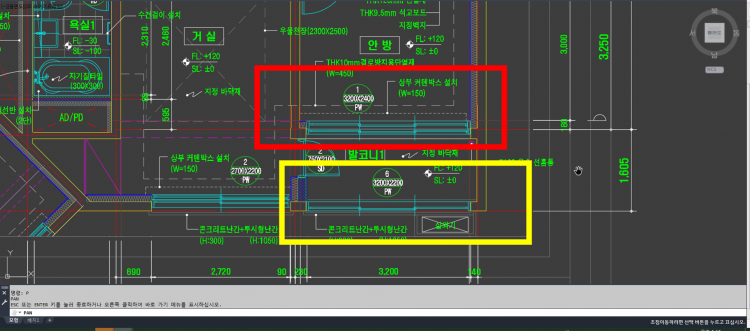 1) 노란색 테두리[PW-6] 구간이 외기 직접이지만 벽체단열이