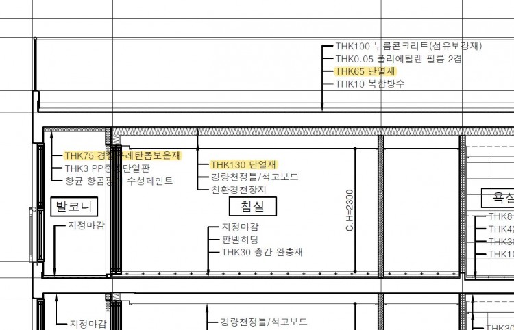 1. 아파트 세대 내부를 내단열로 할 경우 최상층 천장에서 단열재를 콘크리트 하부에 두께 195를 하지 않고 콘크리트를 기준으로 상부에는 65, 하부에는 130으로 나누어서 배분하는 이유를 알고 싶어 질의 남깁니다.