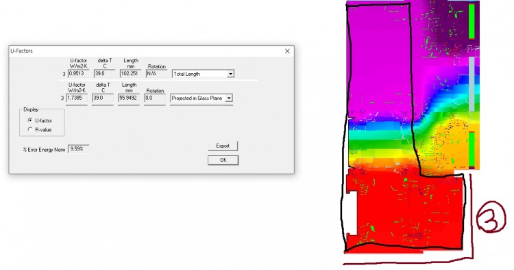 U-factors 값만보면 projected in glass plane쪽이 훨씬 불리하게 나옵니다.