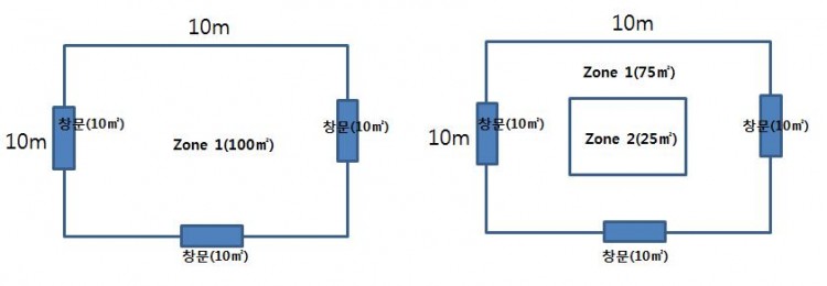외벽면적, 창문면적도 각각 동일하구요..Zone의 차이만 있는 상황입니다.