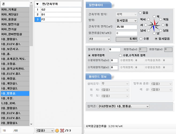 위 사진의[에코투 화면]우측 상단에 나오는 평균 열 관류율 = 입력한 입력면 전체 면적에대한 열관류율값을 평균 낸 것으로 생각하고 있는데요