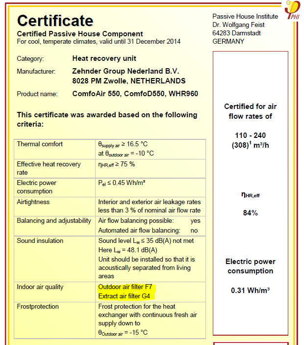 즉 통상적인 독일 제품의 경우 외기의 공기는 G3 필터 -> F7 필터 -> 실내로 공급되므로 거의 완전한 실내 공기질 확보가 가능하다.”