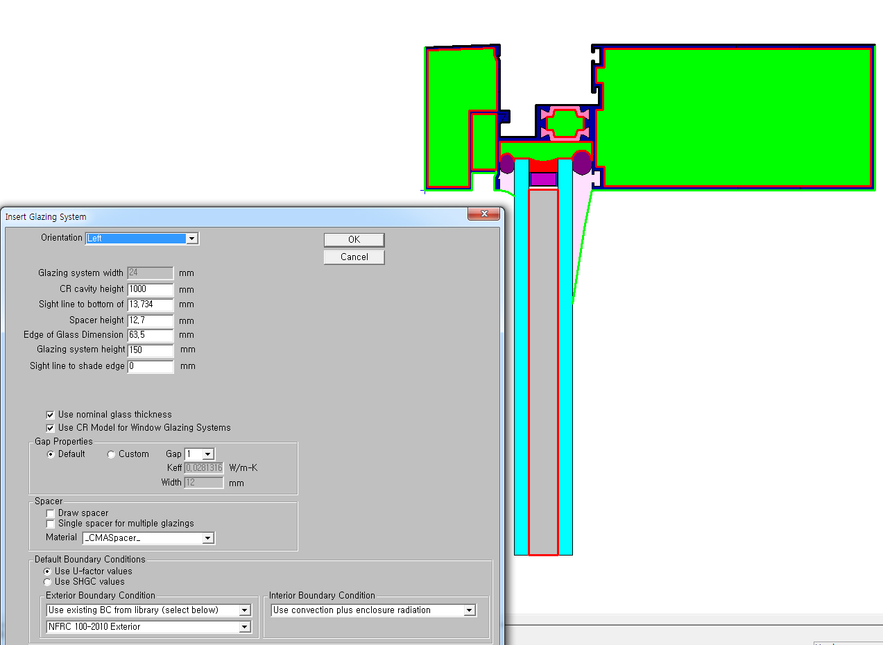 근데 프레임은 therm에서 나온 데이터 길이로 면적이 정확이 나오는데 이상하게 유리 edge area만 적용되지않고 있습니다.