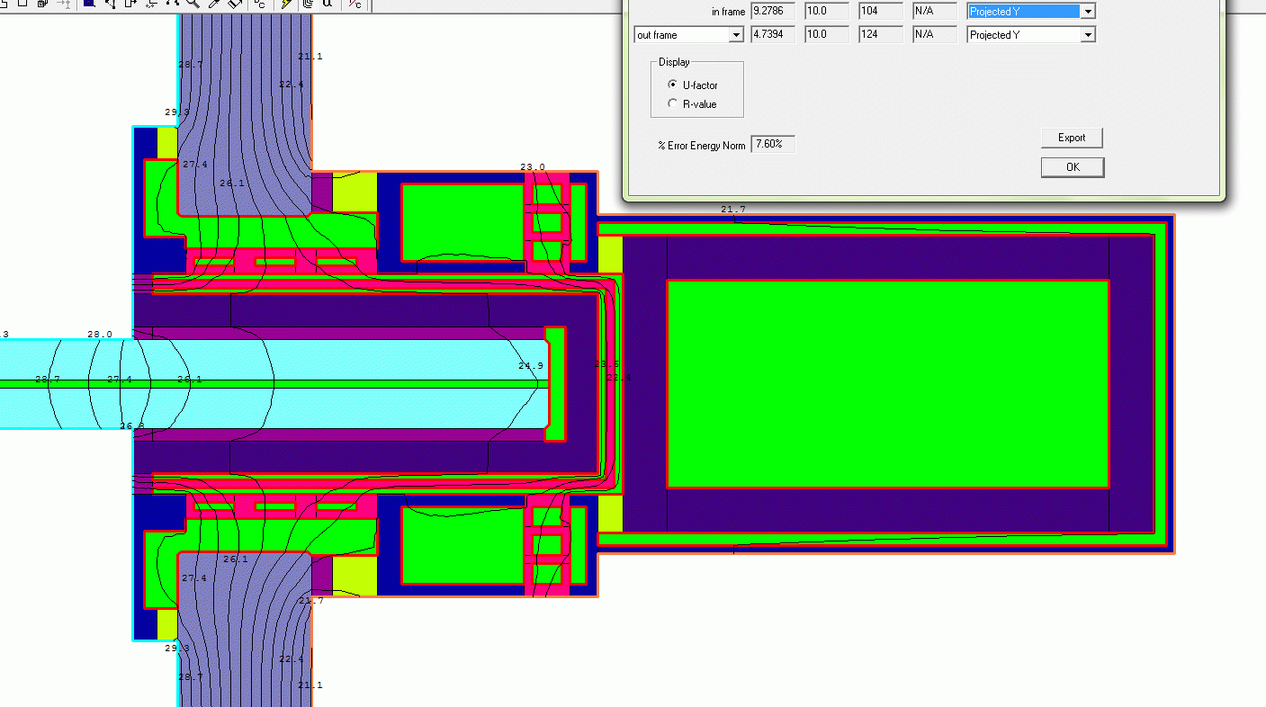 프래임 열관류를 설정할때 내부를 기준으로 하라고 말씀하셨는데요 그렇다면 내부 공기에 면한 프레임 전체 영역을 설정하고 열관류율을 projected X로 보는 것이 맞나요? 멀리언 수평 단면일 경우 입니다.