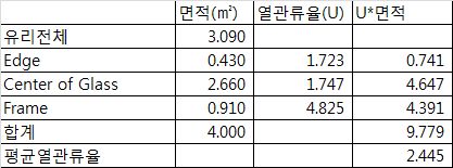 그리고, 열관류율은 EDGE 값을 읽으시면 안되고, window 가 어려우시면, Center of Glass, Edge, Frame 의 열관류율을 이용해서 엑셀로 작업을 해도 무방합니다.