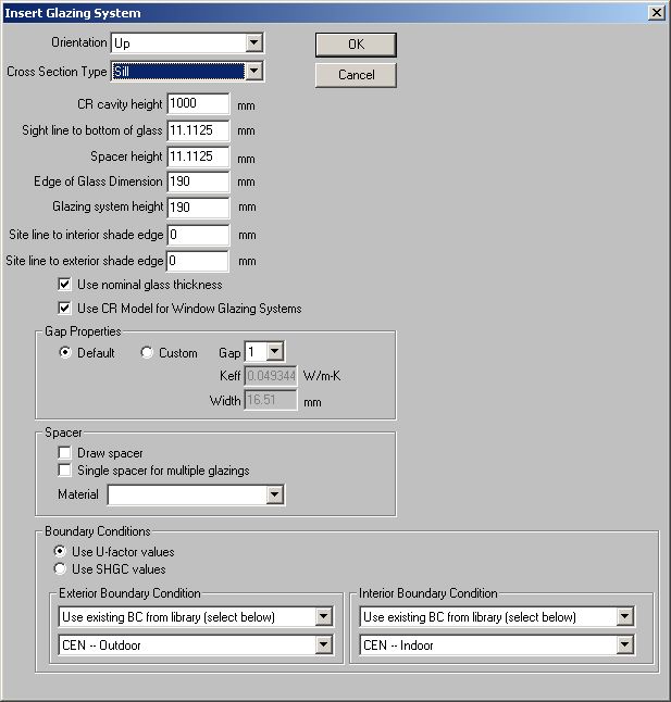 여기서 주의할 것은 B/C 설정만 선택하시는 것이 아니고, Set Edge of Glass Dimension 과 Glazing System Height 를 모두 190 mm로 하셔야 합니다.