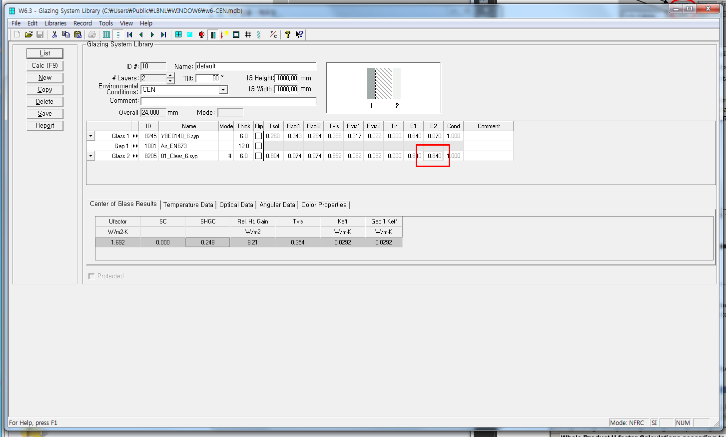 이며, Therm에서 유리를 불러올 때, 아래 그림처럼 B/C를 위의 설명과 같이 만들어 놓은 것을 불러와서 사용하시면 됩니다.