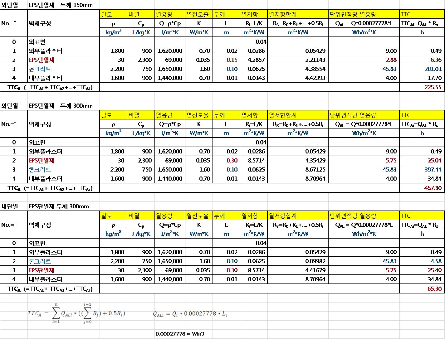 열용량이 큰 콘크리트는 외기를 기준으로 뒷쪽에 배치되어야 합산된 R값과 곱해져서 큰 TTC를 갖게 되는 군요.