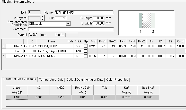 그래서 최근에는 유리제조사의 시험성적서값이 있는 유리를 적용할 경우 그 성적서의 열관류율값을 적용하지만, 성적서가 없는 조합의 유리의 경우나 optic을 통한 접합유리를 적용할 경우, 어떻게 하면 윈도우프로그램에서 유리제조사의 시험성적서 열관류율값과 유사하게 혹은 동일하게 열관류율값을 도출할 수 있을까요?